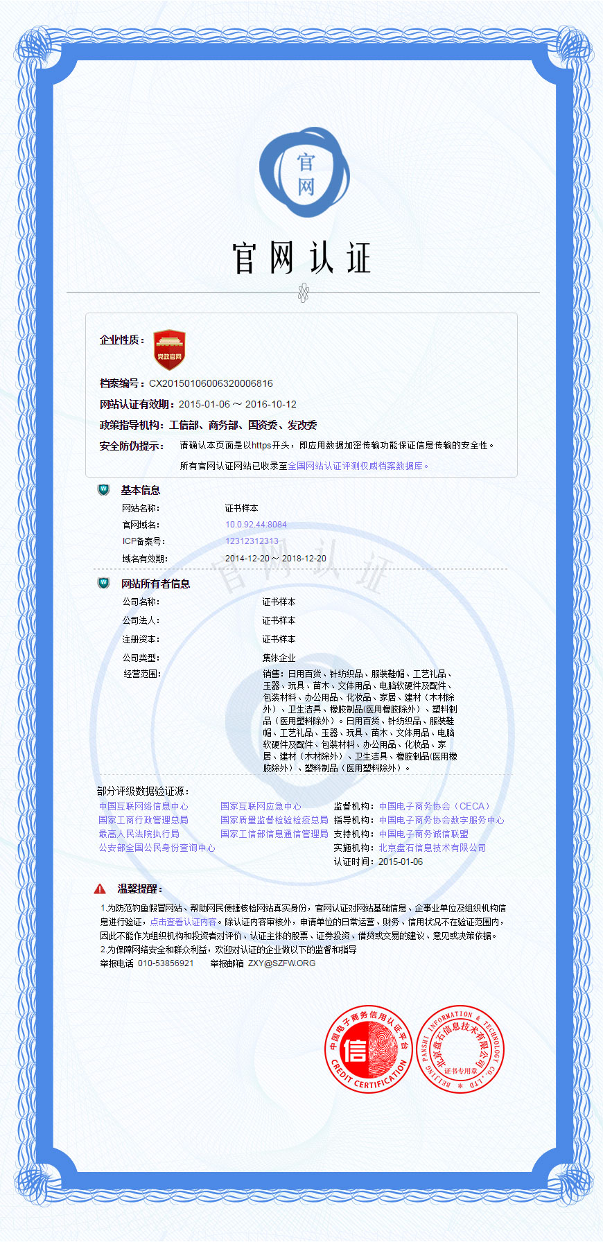 企业网站诚信认证